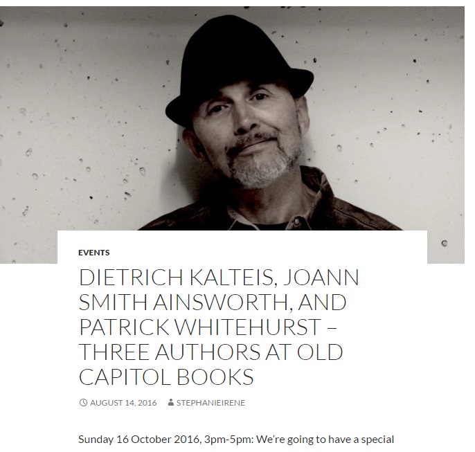 I’m very excited to announce I will be joining authors Dietrich Kalteis and JoAnn Smith Ainsworth for a special event at Old Capitol Books in Monterey, CA, on October 16th,