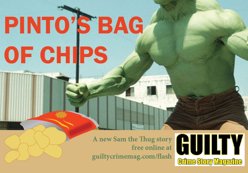 Thank you to Guilty Crime Story for publishing Sam’s latest adventure on their flash fiction page. Head on over there to see how Sam manages to take on a guy who likens himself like Lou Ferrigno’s understudy. Pinto’s Bag of Chips can be read here.